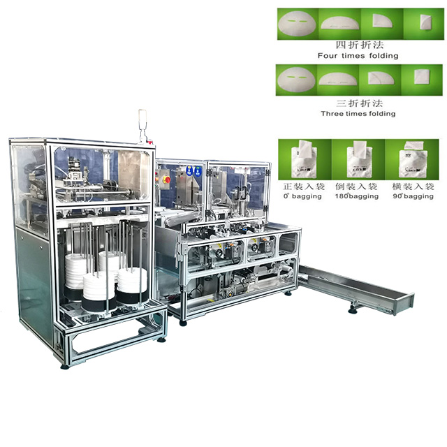2、自動折棉。通過第一步手工放棉之后,下一步就是由面膜折棉機進行折棉,折棉方式:三、四折折法,正裝、倒裝;